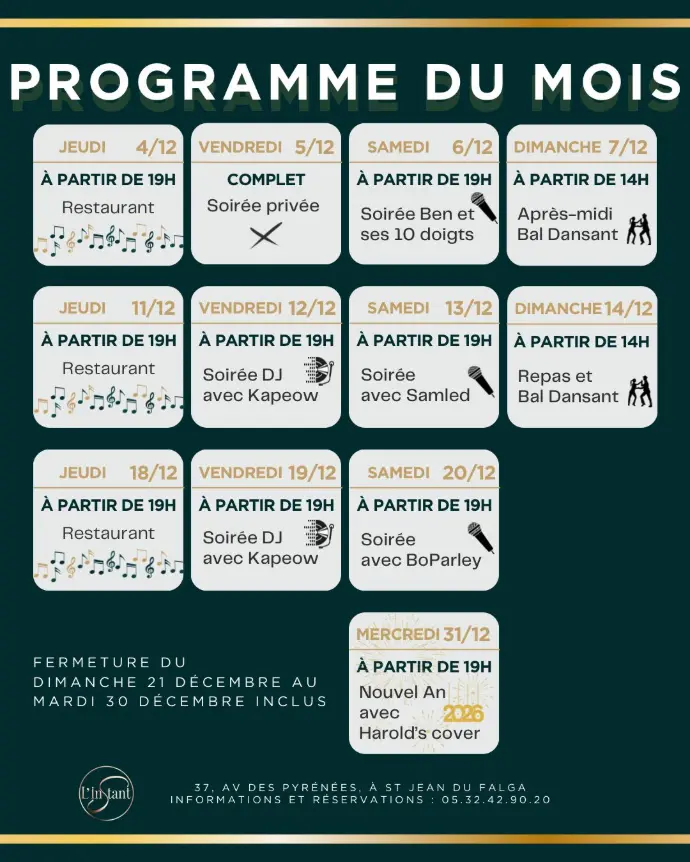 Vous cherche un endroit pour vire une soirée dansante? Venez à L'Instant